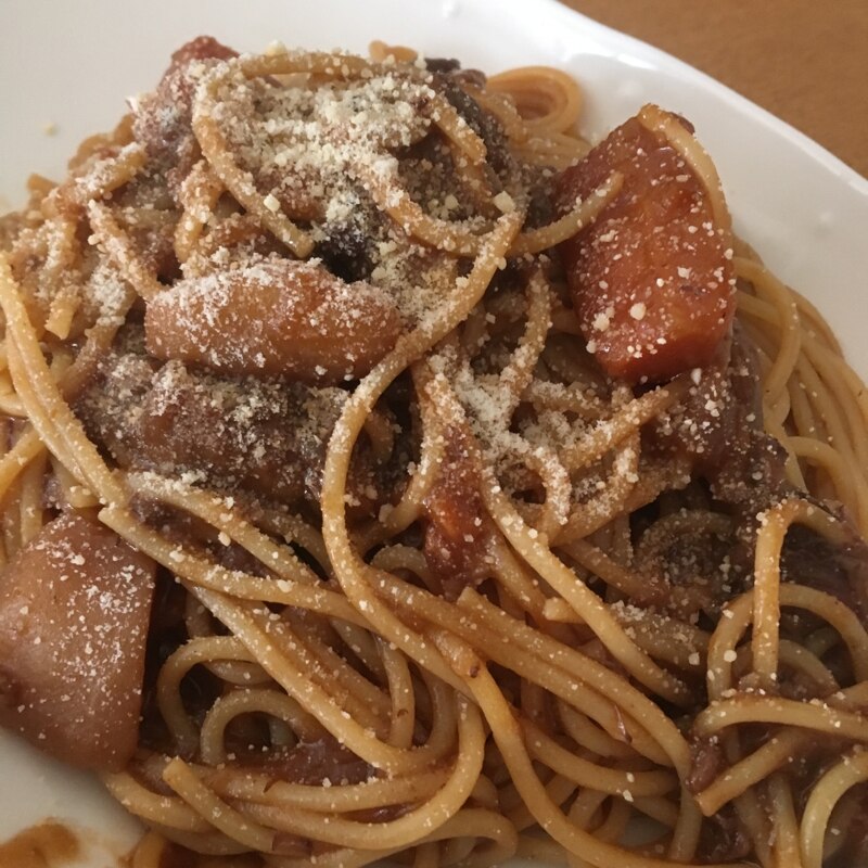 ビーフシチューのリメイクパスタ 沖縄ひとりめし